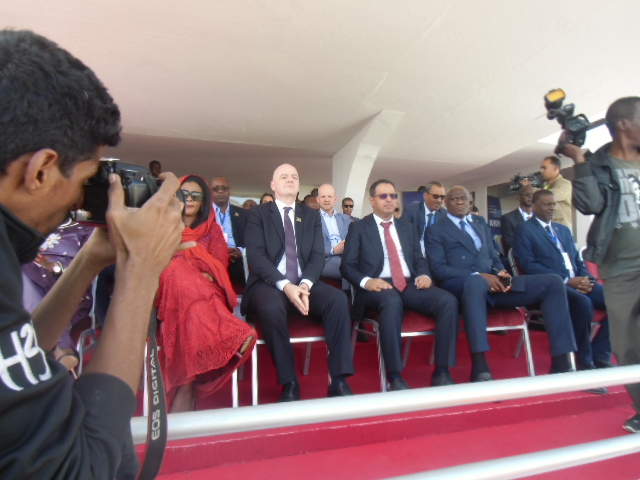 يذكر أن رئيس الاتحاد الدولي لكرة القدم قام اليوم بزيارة رسمية لموريتانيا دشن خلال ملعب شيخا ولد بديا الممول من مشروع جول التابع للاتحاد الدولي لكرة القدم.