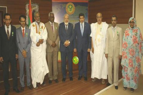ﻗﺎﻡ ﻭﺯﻳﺮ ﺍﻟﺜﻘﺎﻓﺔ ﻭﺍﻟﺼﻨﺎﻋﺔ ﺍﻟﺘﻘﻠﻴﺪﻳﺔ ﻭﺍﻟﻌﻼﻗﺎﺕ ﻣﻊ ﺍﻟﺒﺮﻟﻤﺎﻥ ﺍﻟﻨﺎﻃﻖ ﺍﻟﺮﺳﻤﻲ ﺑﺎﺳﻢ ﺍﻟﺤﻜﻮﻣﺔ ﺍﻻﺳﺘﺎﺫ ﺳﻴﺪﻱ ﻣﺤﻤﺪ ﻭﻟﺪ ﻣﺤﻢ ، ﺍﻟﻴﻮﻡ ﺍﻟﺠﻤﻌﺔ ﺑﻤﺒﺎﻧﻲ ﺍﻟﻮﺯﺍﺭﺓ ﻓﻲ ﻧﻮﺍﻛﺸﻮﻁ ﺑﺘﻮﺷﻴﺢ ﻋﺪﺩ ﻣﻦ ﻣﻮﻇﻔﻲ ﺍﻟﻘﻄﺎﻉ ﻭﺍﻋﻼﻣﻴﻴﻦ ﺁﺧﺮﻳﻦ ، ﻭﺫﻟﻚ ﻓﻲ ﺍﻃﺎﺭ ﺍﻻﺣﺘﻔﺎﻻﺕ ﺍﻟﻤﺨﻠﺪﺓ ﻟﻠﺬﻛﺮﻯ ﺍﻝ 58 ﻟﻌﻴﺪ ﺍﻻﺳﺘﻘﻼﻝ ﺍﻟﻮﻃﻨﻲ .